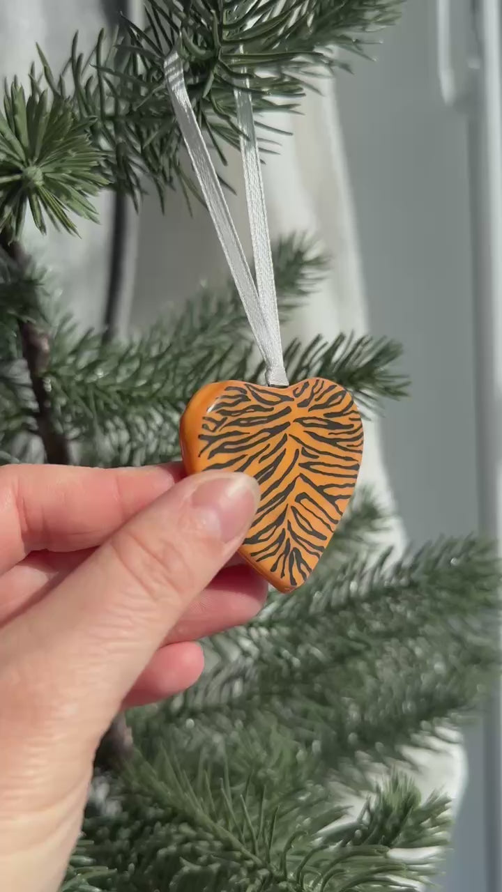 Ornement cœur tigre en verre fusionné
